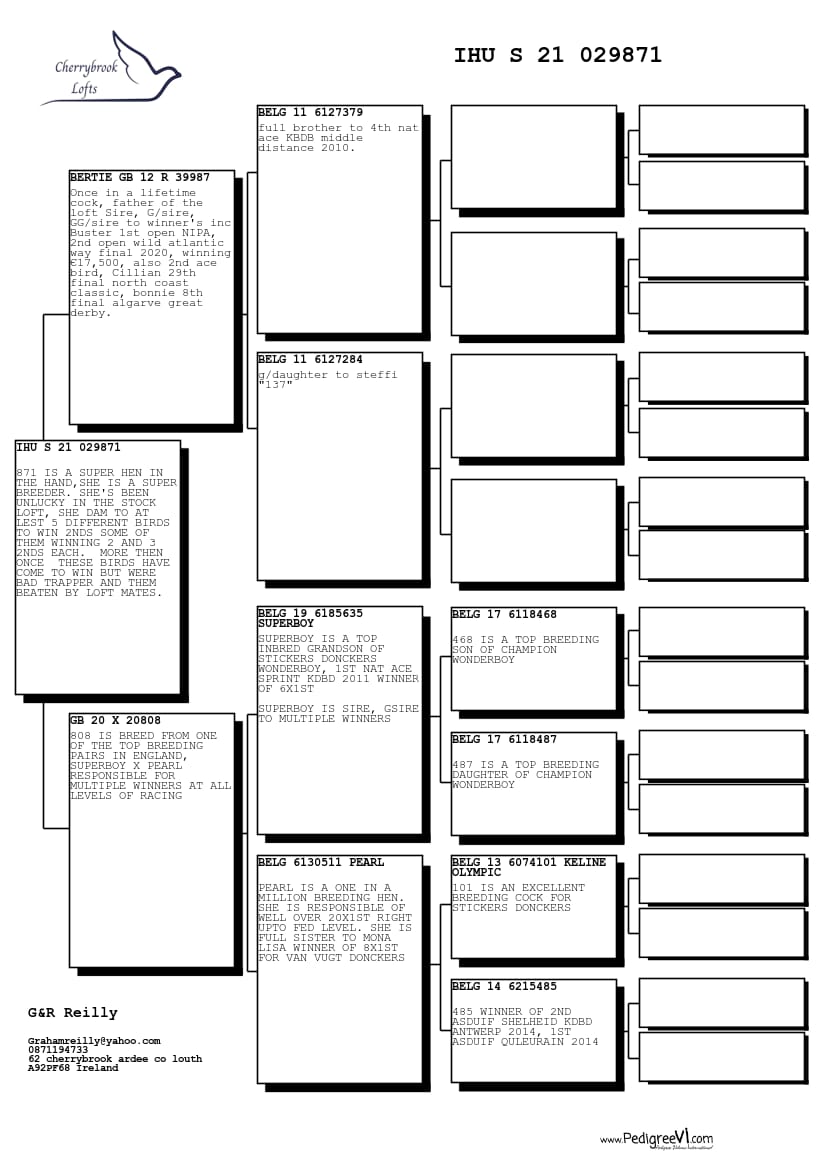 All enquiries regarding the sale should be directed to Steve O’Dea at Pigeon Partners using the email address ([email protected]), WhatsApp or SMS (+353 83 1289981). No callers or Loft Visitors to the Reilly Loft Loft without prior approval and arrangements being made via Pigeon Partners. Graham will welcome potential bidders who want to see specific birds prior to the sale. All bids are binding, and must be paid for via the Pigeon Partners site prior to collection arrangements being made.