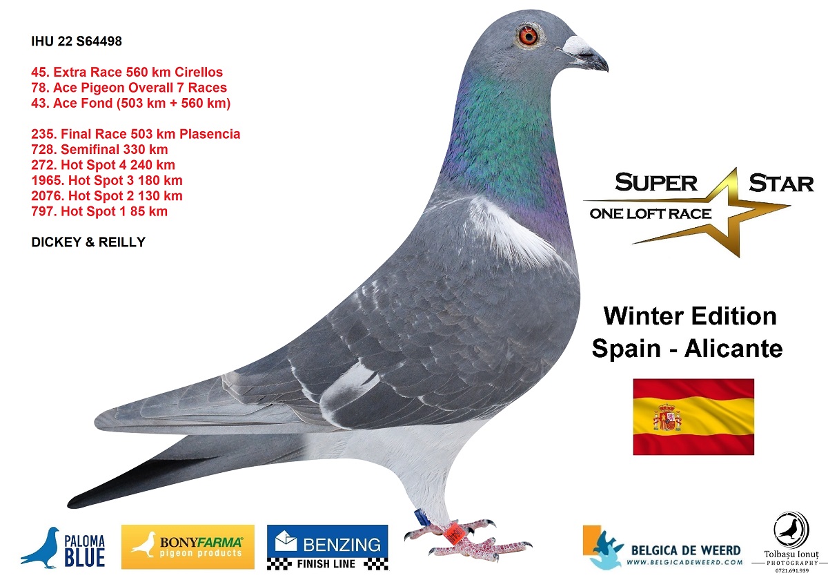 1st Ireland, 98th International, Final, 530km, 3,653 birds, winning $ 1,500.