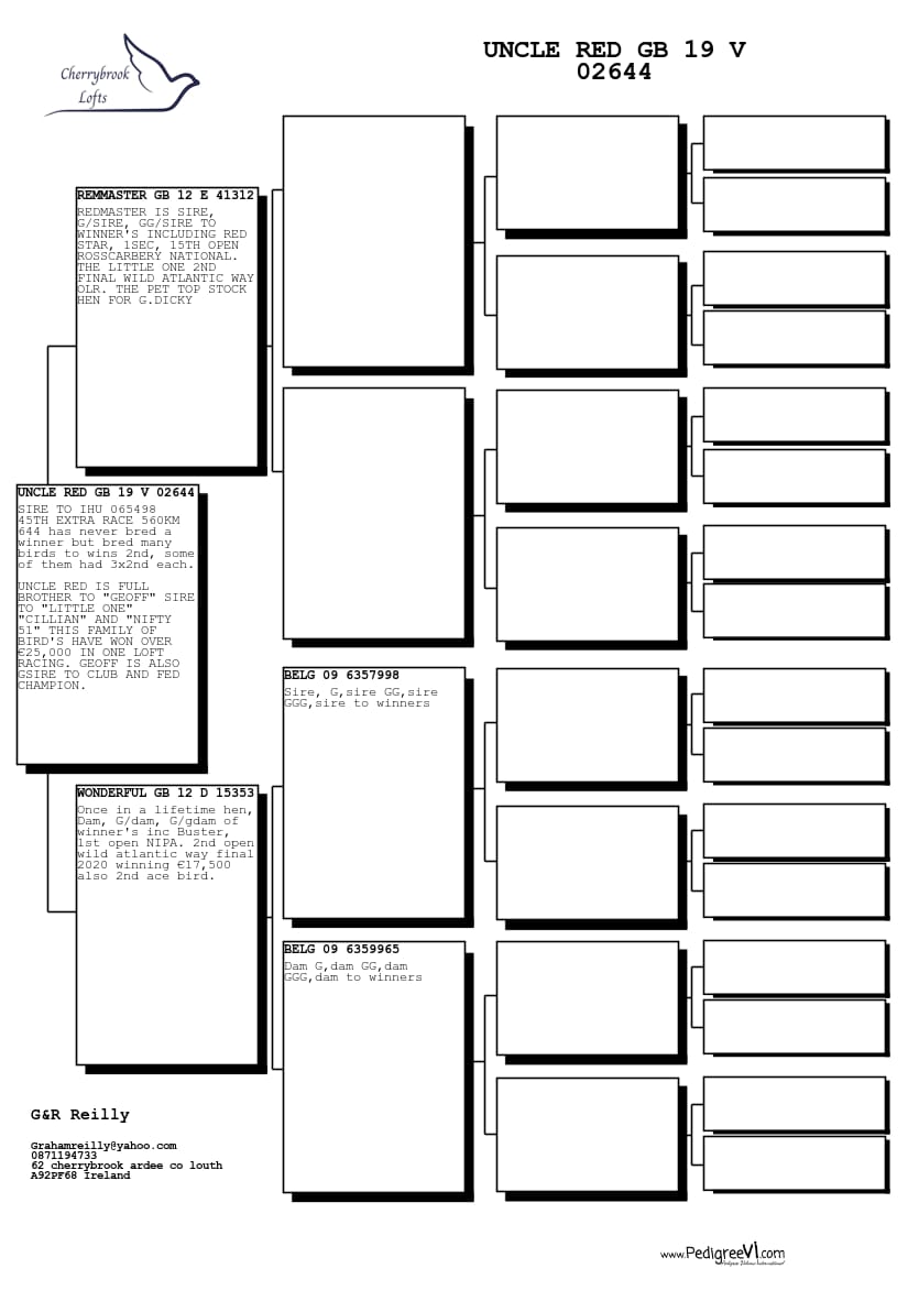 1) Pedigree Analysis – GB 19 V 02644 “Uncle Red” (Cock)