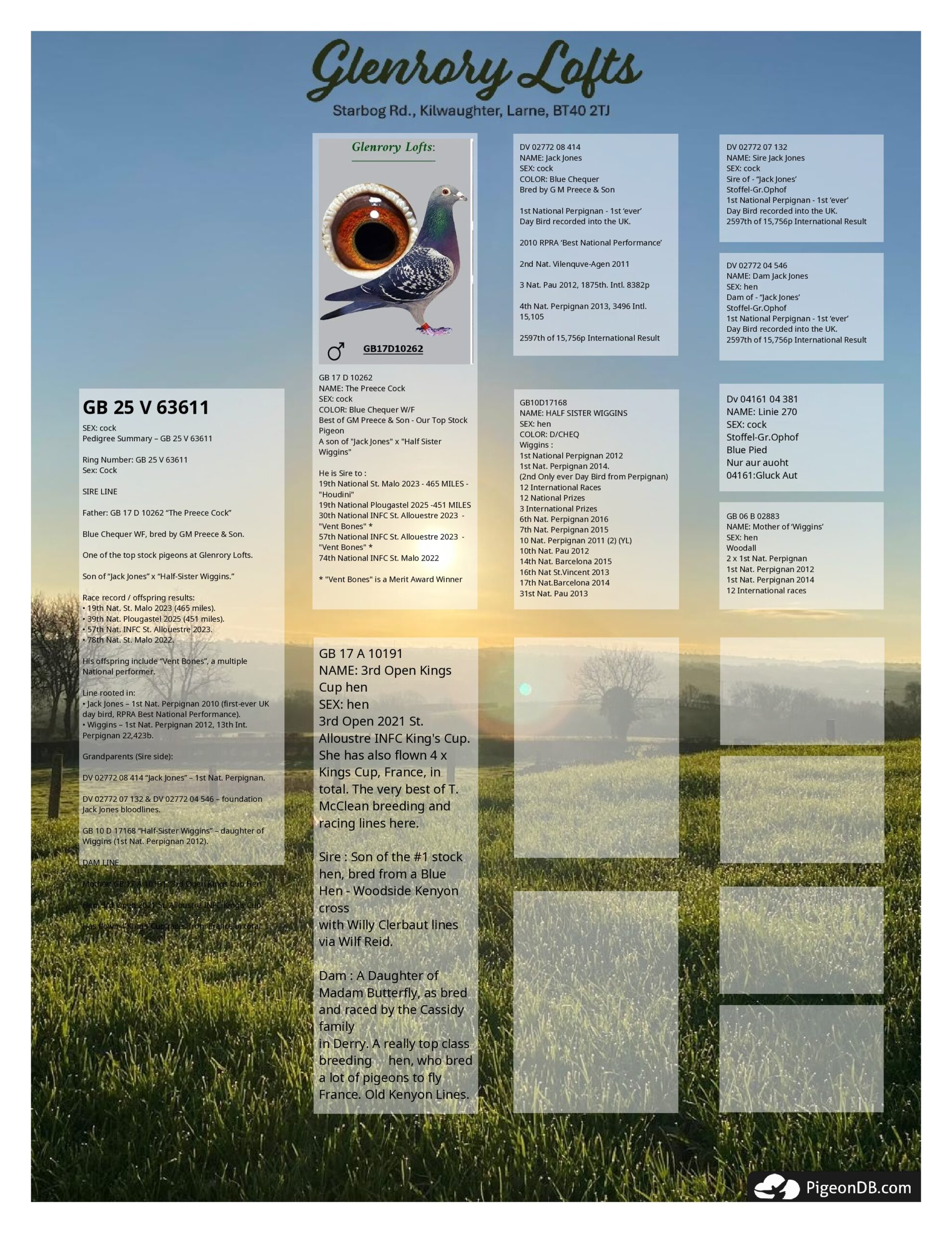 GB 25 V 63611 (Cock) is a product of two elite distance families: