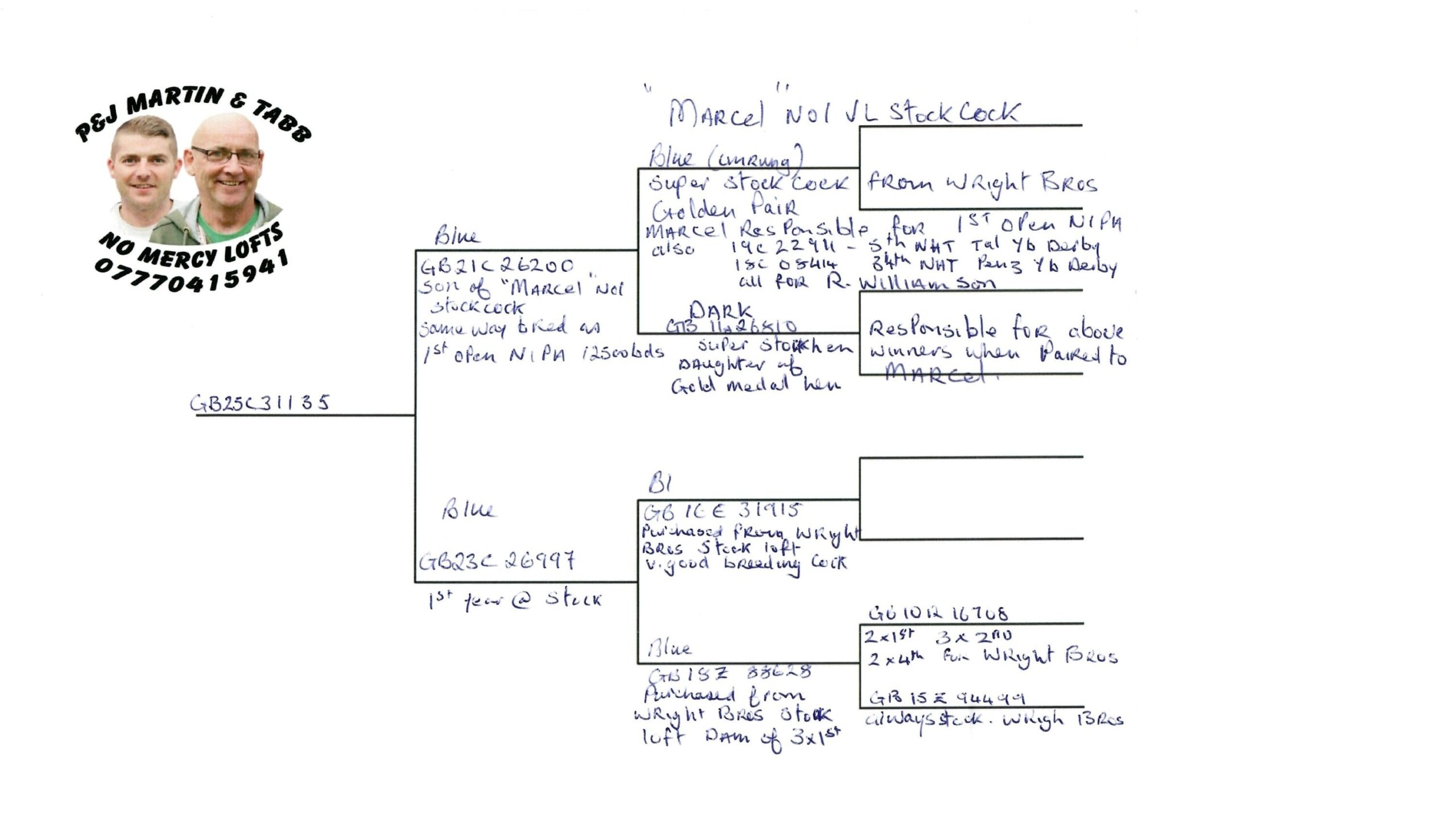 Breeding (dam line): purchased from Wright Bros stock loft; dam of 3 x 1st prize winners.