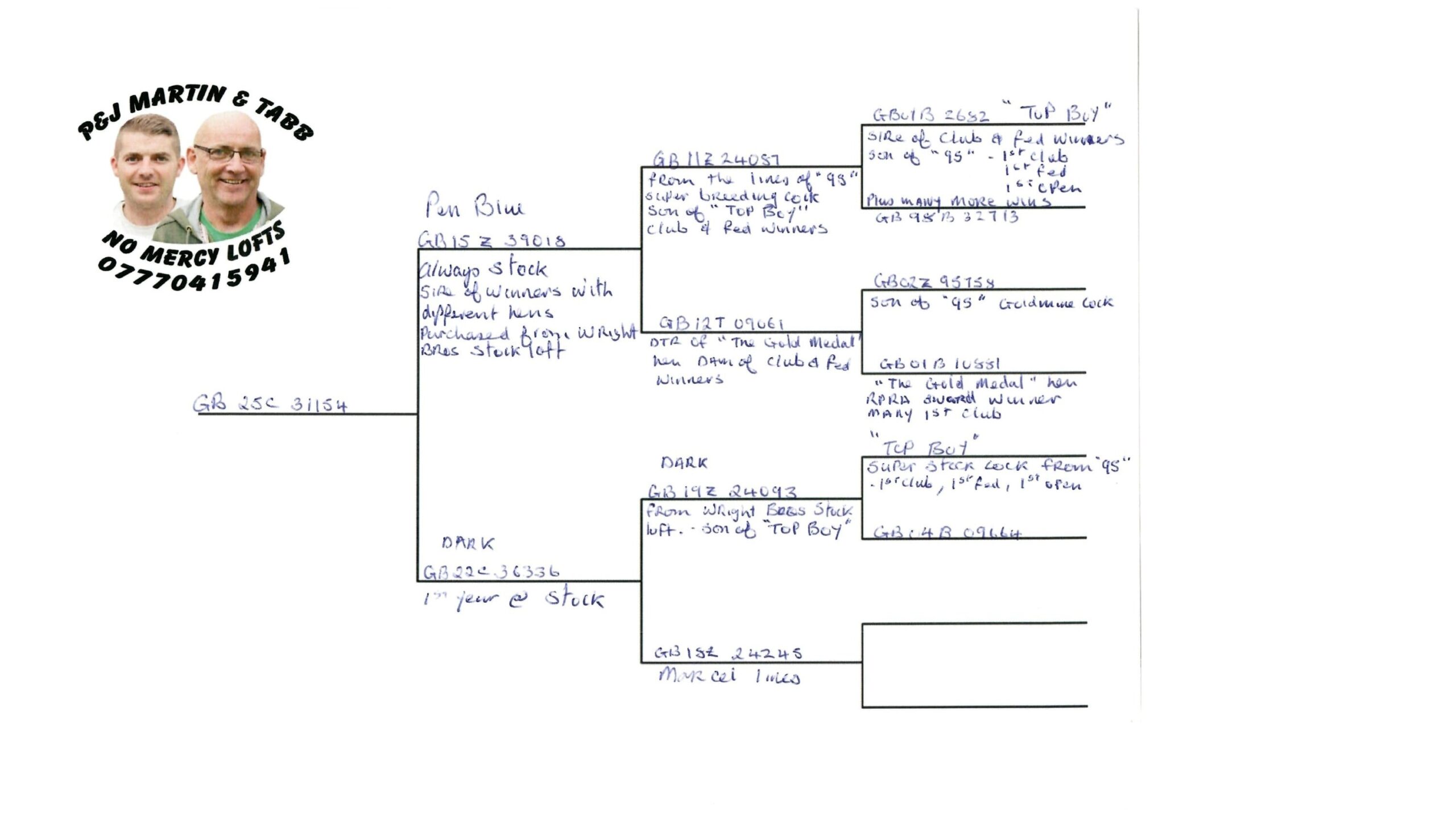Sire: GB15 Z 39018 – always stock; sire of winners with different hens; purchased from Wright Bros stock loft.