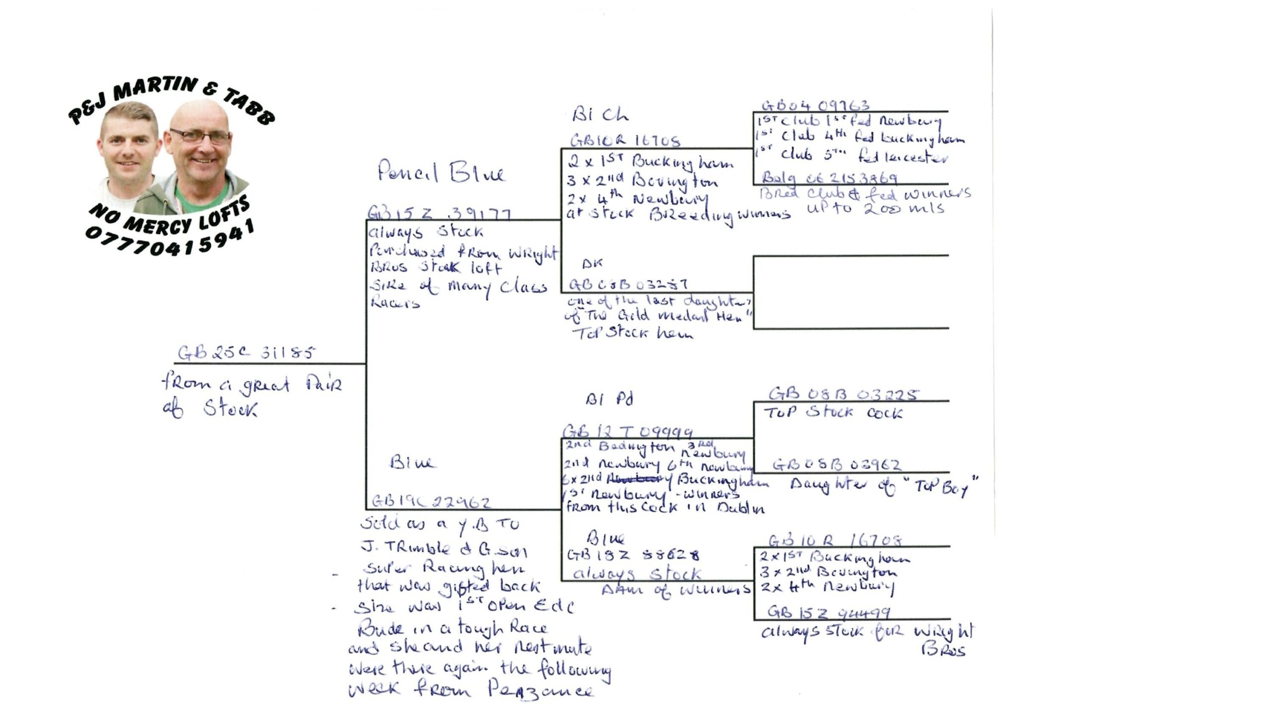 Sire: GB15 Z 39177 (Pencil Blue) – always stock; purchased from Wright Bros stock loft; sire of many class racers.