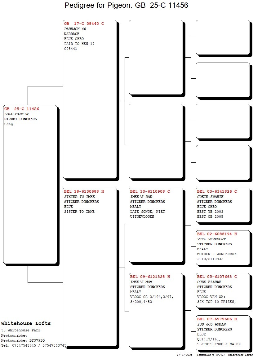 Pedigree Analysis for Pigeon: GB 25-C 11456