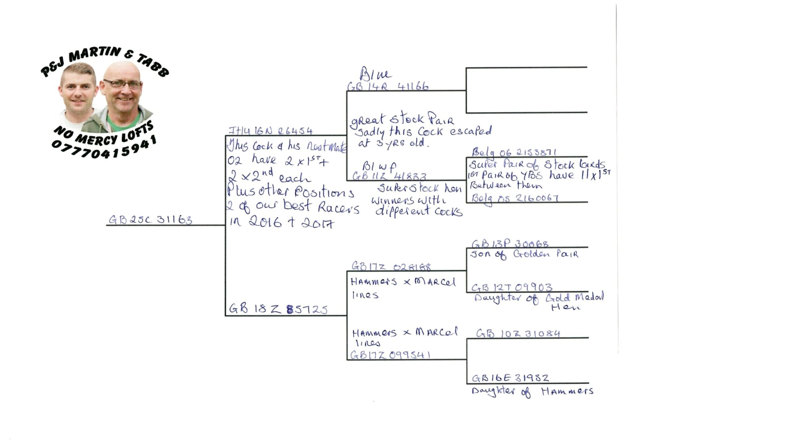 GGS/GGD refs: GB13 P 30088 (son of Golden Pair), GB12 T 09903 (daughter of Gold Medal hen), GB10 Z 31084 paired to GB16 E 31952 (daughter of Hammers).